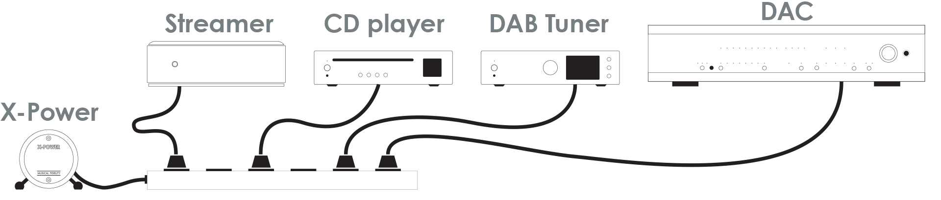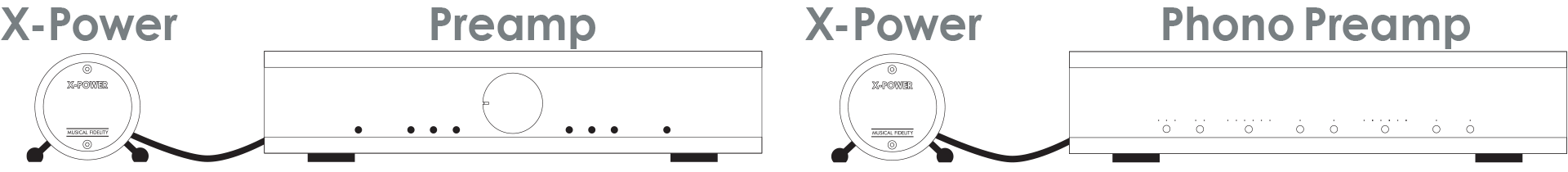 The X-Power can be used to supply clean power to sources like CD players, phono preamps, regular preamps, DACs, streamers and many more.